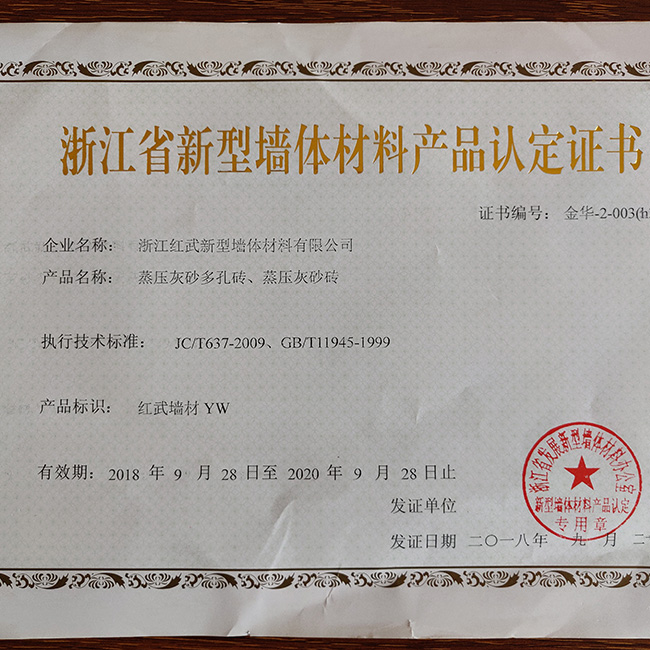 近年來,浙江紅武得到政府有關部門的大力支持,在2014年評為義烏市《機器換人先進單位》,2015年評委金華市《墻材革新先進單位》,產品受國家政策扶持,墻改基金返還用戶,深受開發商、建筑商歡迎。公司還將致力開放和生產新型墻體材料,本著科學管理安全生產,質量為先的理念,為國家的環保建設事業添磚加瓦。